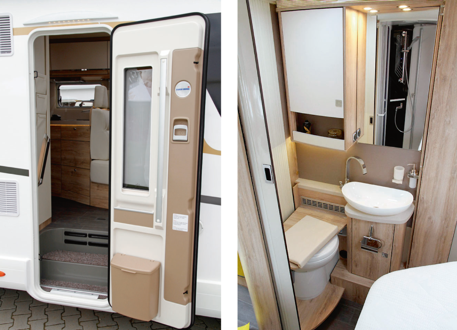 Lyset ved sittegruppen er plassert direkte på overskapet, slik at du ikke lenger skaller i det. Det er vesentlig bedre plass i kjøkkenbenken, da gasskassen ikke lenger er plassert her. Dobbeltsengen har elektrisk drevet hydraulisk heve- og senkefunksjon. Så du kan prioritere å ha med sykler i garasjen (opp til 125 cm), eller en lavere seng (20 cm).