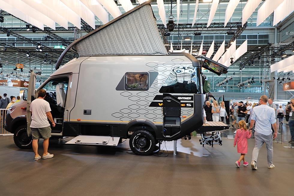 På Caravan Salon-messen kunngjorde Hymer at de vil serieprodusere testprosjektet fra 2019, Venture S. Modellen skiller seg fra tradisjonelle bobiler på flere måter: Uteplass og terrasse i to etasjer, integrert utekjøkken, innvendig fast trapp, og ikke minst spennnede materialer som normalt ikke finner veien til en bobil. Neste uke kan du selv sjekke ut "fremtidsbobilen".