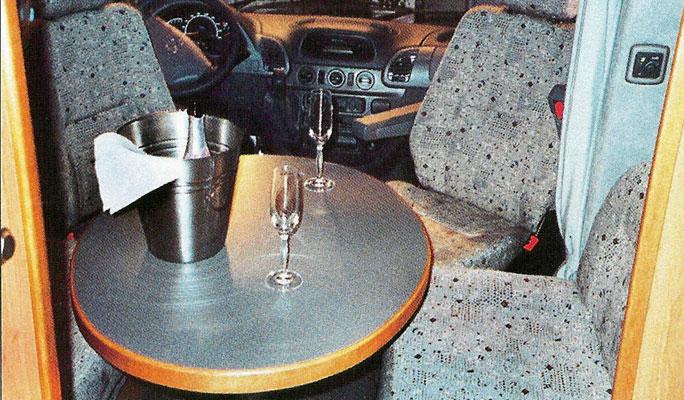 Det mest oppsiktsvekkende med bilen er altså at den ved første øyekast ser ut som en original Sprinter med forhøyet tak. Men så viser det seg at bilen har et avansert påbygg med muligheter for elegante løsninger. Her må og nevnes markisen som er integrert i taket. En helstøpt glassfiberkasse er solidere (sikkerhet ved kollisjoner) og eliminerer risikoen for lekkasje. Er dette fremtiden? Jeg tror ikke det. Men det vil absolutt være et alternativ til de tradisjonelle påbyggene. Selv om planløsningen innvendig er nokså tradisjonell har bilen mange spennende detaljer. Vil du se en må du foreløpig til Tyskland. Hva med Caravan Saloon i Düsseldorf 31.8 til 8.9.02. Eller du kan klikke deg inn på Internett med adressen www.la-strada.de.