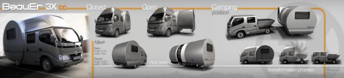 Det har tidligere vært presentert mange kreative måter å utnytte slide-out på. Men vi har aldri maken til Beauer 3Xcc. Eller hva sier du til to stooore slide-outs på en kompakt bobil?