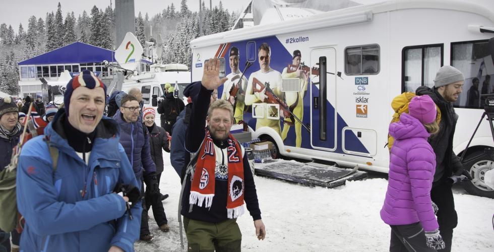 – Mange spør oss hvordan vi orker å ha denne ferieformen, sier Annie mens hun viser meg rundt i en varm og moderne men hjemmekoselig vogn. – For det første koser vi oss med kjøreturen hit, vi har tid til å sitte og skravle og kose oss. Her har vi alt vi trenger og jeg behøver ikke planlegge. Butikken er oppe til 23.00 og alt av tørrvarer, te, kaffe og klær har vi liggende her. Selv i 20 minusgrader er det så gulvvarmt at du kan gå barbeint, forteller hun. Campingvogna har svært god skapplass, sågar et klesskap med en varmevifte og en hylle som fanger opp vann og fukt fra dagens fuktige skitøy. Skapene er godt opplyst, komfyren har både stekeovn og grill, en 40 liters varmtvannstank sørger for godt og varmt vann i dusj og på kjøkken. På badet er døra brukt som tørkeholder for håndklær og det er varme i gulvet. I spikerteltet har de plass til en ekstra Tv, en garderobe/entre og en sofakrok som enkelt kan gjøres om til gjesterom. - Vi kan ikke ha det bedre, sier de.