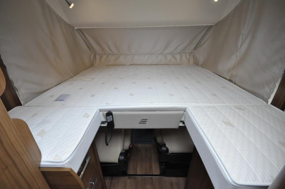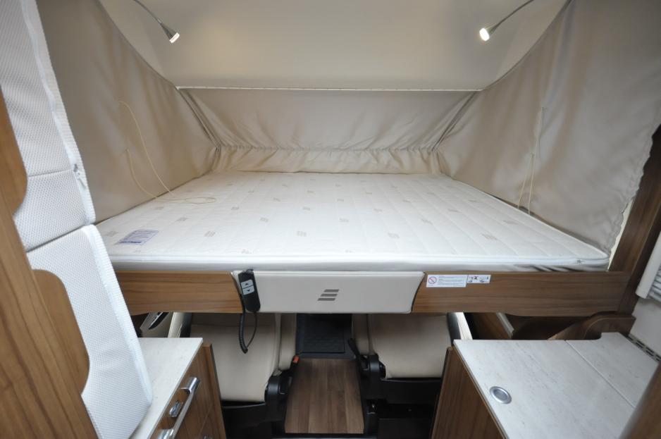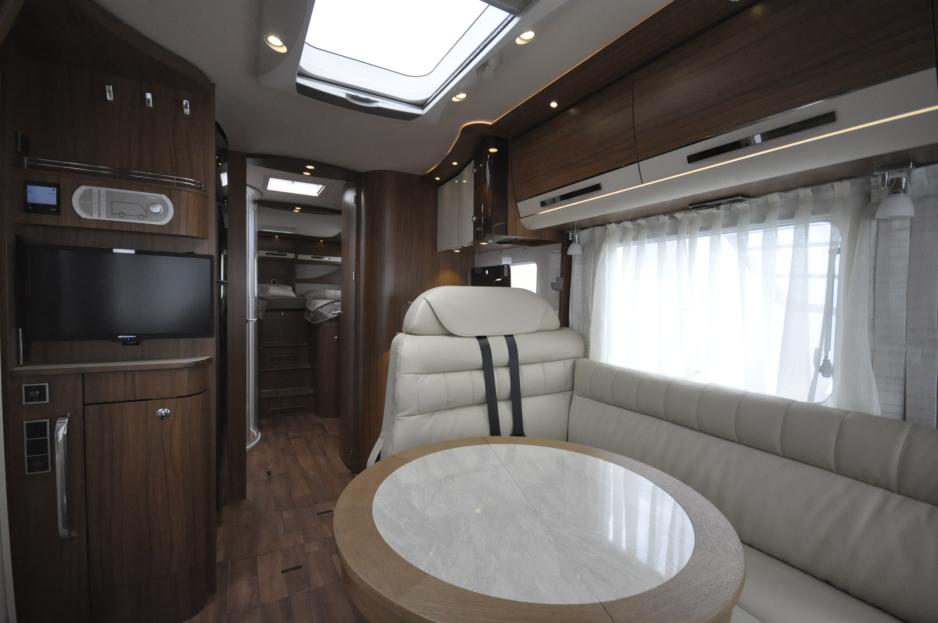 Som sin storebror er den møblert med en u-sofa bak, kjøkken i midten, baderom bak fører og en senkeseng hvor man kan velge å sove på langs eller tvers.