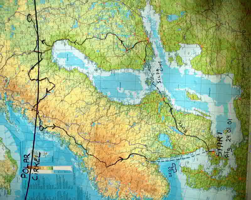 Selve ruten langs Polarsirkelen er ca. 1.600 km, men vi skulle jo også fram til startstedet og hjem fra målet, slik at det i alt ble kjørt ca. 4.500 km. Vi startet i København og fra Stockholm seilte vi med Silja Line til Turku/Åbo i Finland. Vi kjørte deretter til Helsinki for å ta bilnattoget til Rovaniemi. Neste morgen ankom vi godt uthvilt julenissens by og herfra var det ikke langt til selve startstedet, den finsk/russiske grensen øst for byen Salla.