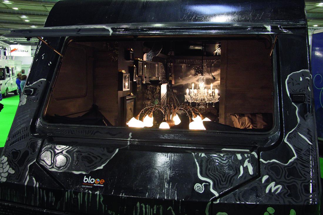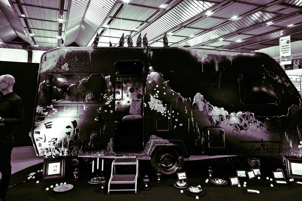 Belgiske Peter Elseviers er skribent og kunstner. På Mobicar-messen i Brüssel fikk han en oppgave: Lag et kunstverk ut av en gammel campingvogn. Resultatet ble en fullt ut brukbar campingvogn som du ikke har sett maken til. Foto Seppe Kuppens