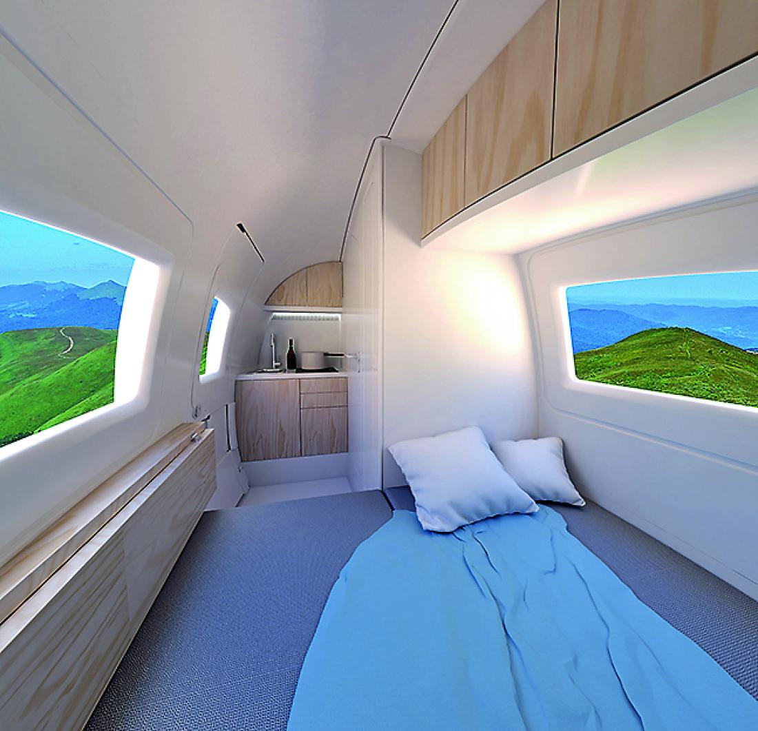 Formen er energieffektiv, og den kompakte kapselen har bad med dusj, soveplass for to, kjøkken samt kombinert spise- og arbeidsplass. Enheten har som mål å være selvforsørget med energi, som hentes fra en liten, flyttbar vindmølle - samt solcellepanel på taket.
