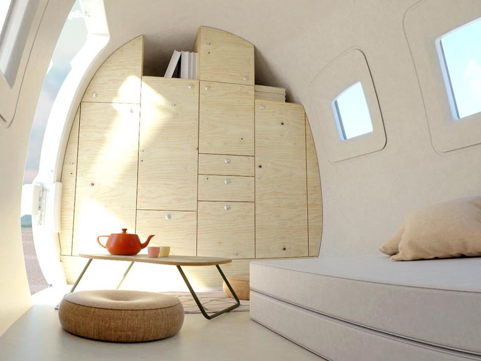 Det slovakiske selskapet som står bak denne ufo-lignende hytta, kaller produktet Ecocapsule. Selskapet vurderer videre å utstyre modellen Space med et understell på hjul – slik at man plutselig har en meget moderne utseende campingvogn. Prisen på drøyt 500 000 kroner tilsier at dette ikke blir et volumprodukt, men det er neppe det produsenten var ute etter da de designet det de kaller en «kapsel». Space er en såkalt mikroenhet, designet som et gigantisk egg.