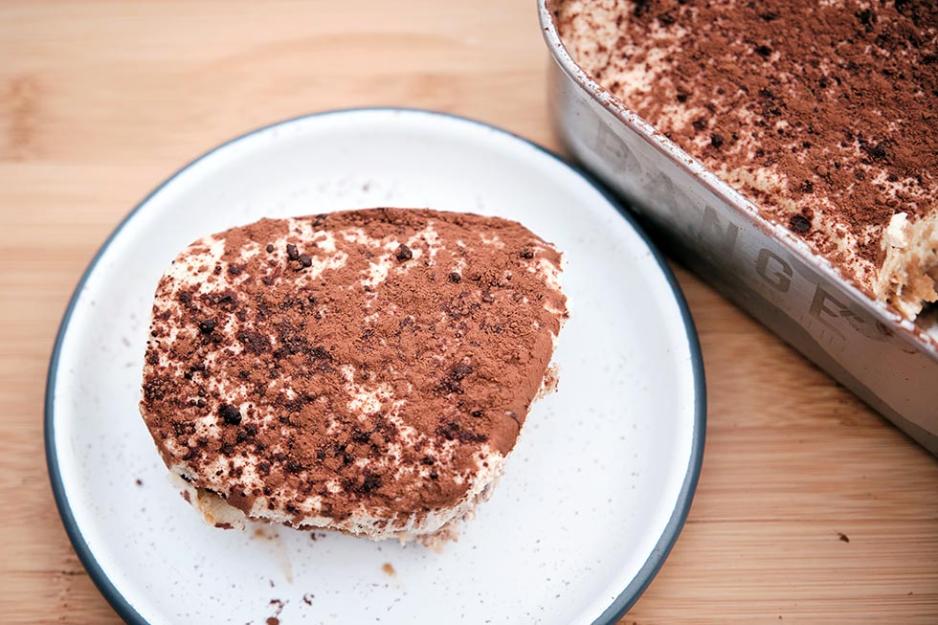 - Gjenta prosessen med et nytt lag av dyppet ladyfingers og resten av mascarponekremen.