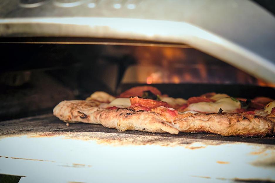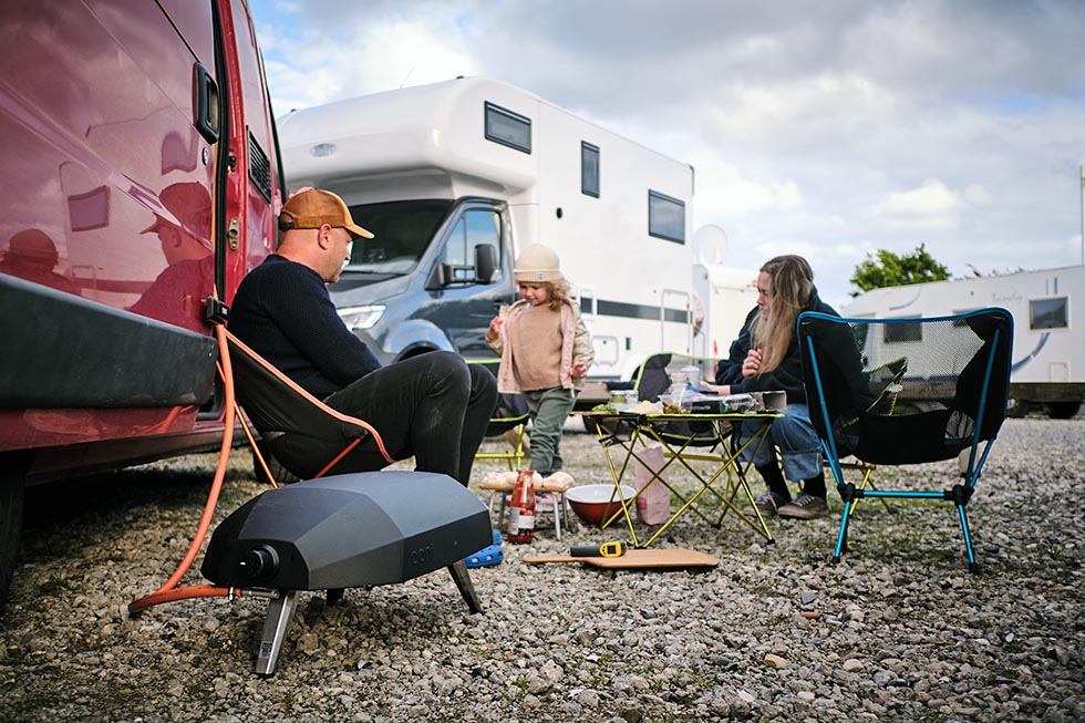 Vi har en Ooni Koda 12 pizzaovn, som vi har hatt i bobilen i til sammen to somre. Den går på gass, og mannen min har laget en hurtigkobling slik at vi kan koble den rett til gassforsyningen i bobilen. Vi er så fornøyde med pizzaovnen at grillen har blitt permanent parkert hjemme i kjelleren.