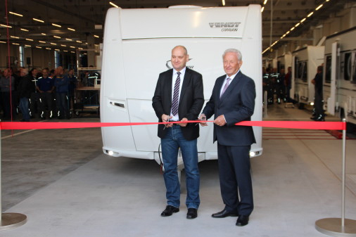 I dag kunne Fendt caravan glede seg over en utvidelse i fabrikken på 6400 kvadratmeter. Arealet brukes til en tredje produksjonslinje og lagringsplass. Produsenten har dermed skaffet seg større fleksibilitet og ser på utvidelsen som en viktig investering for fremtiden, forteller produsenten i en pressemelding til Din Fritid. Fendt har investert rundt 7,5 millioner euro i den nye hallen på 6400 kvadratmeter. Innvielsen ble gjort av Martin Paninka, som er ordfører i Asbach-Bäumenheim og Harald Striewskim eier av Fendt-Caravan GmbH.
