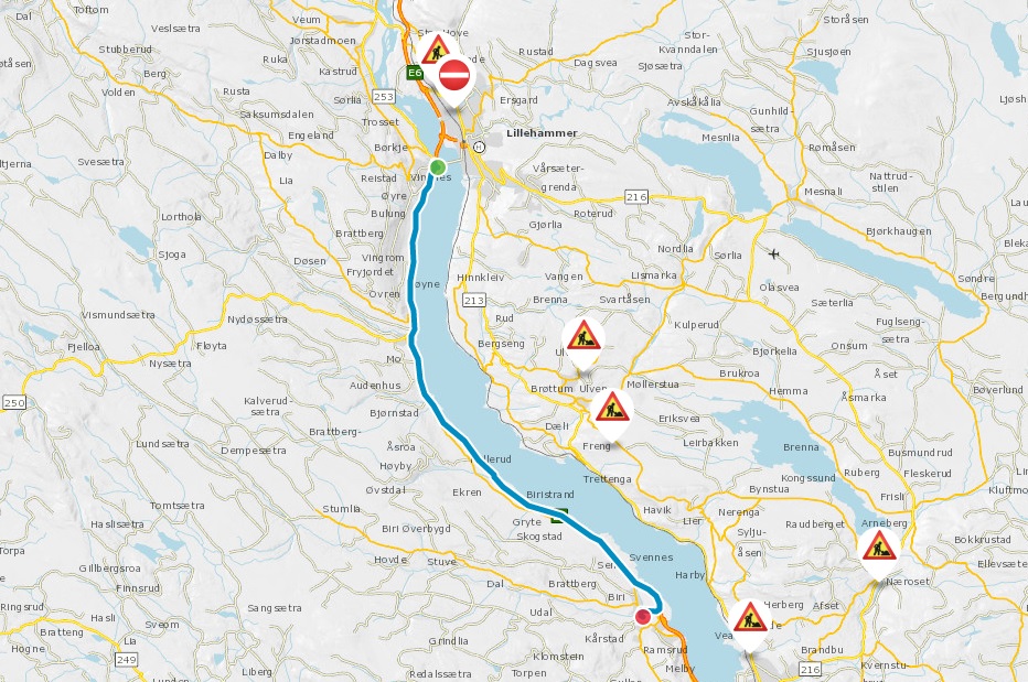 I perioden 30. august - 17. september blir det fresing og asfaltlegging på E6 mellom Biri og Vingnes.