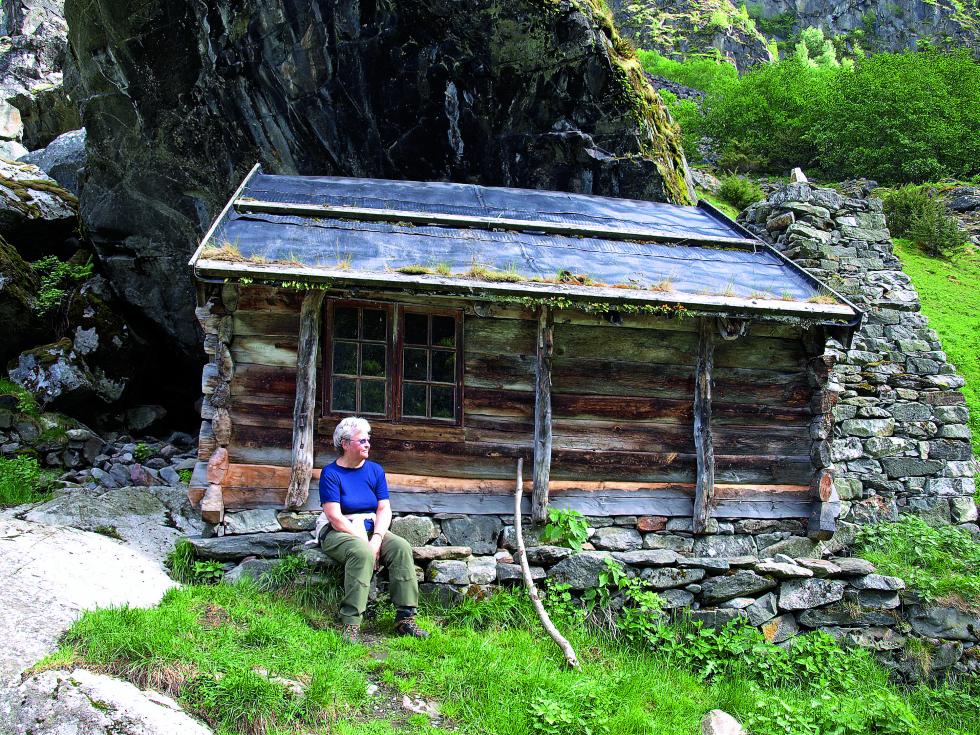 Godt bløte ankom vi så neste nedlagte fjellgård, Sinjarheim. Der i solveggen tørket vi klær og rastet en god stund. Det fortelles at Sinjarheim har sin historie helt tilbake til vikingetiden. Gården ble fraflyttet i 1922, men ble visstnok brukt som seter etter dette. Videre oppover dalen mot Østerbø ligger flere spektakulære rasteplasser. Vetlahelvete er et sted vi tok en rast ved. Dette er en særdeles flott jettegryte som det er verdt å ta en kikk på. Så tok vi en pust på Bjønnestigvarden, et aldeles flott utkikkspunkt, som Flintoe udødeliggjorde i sitt maleri som henger i Nasjonalgalleriet. Som planlagt tok vi oss god tid. Turen er anslått til å ta rundt seks-sju timer. Hvor lang tid vi brukte snakker vi ikke om. I vår vane tro er vi ute i naturen for å oppleve og kose oss - ikke for å sette rekorder.