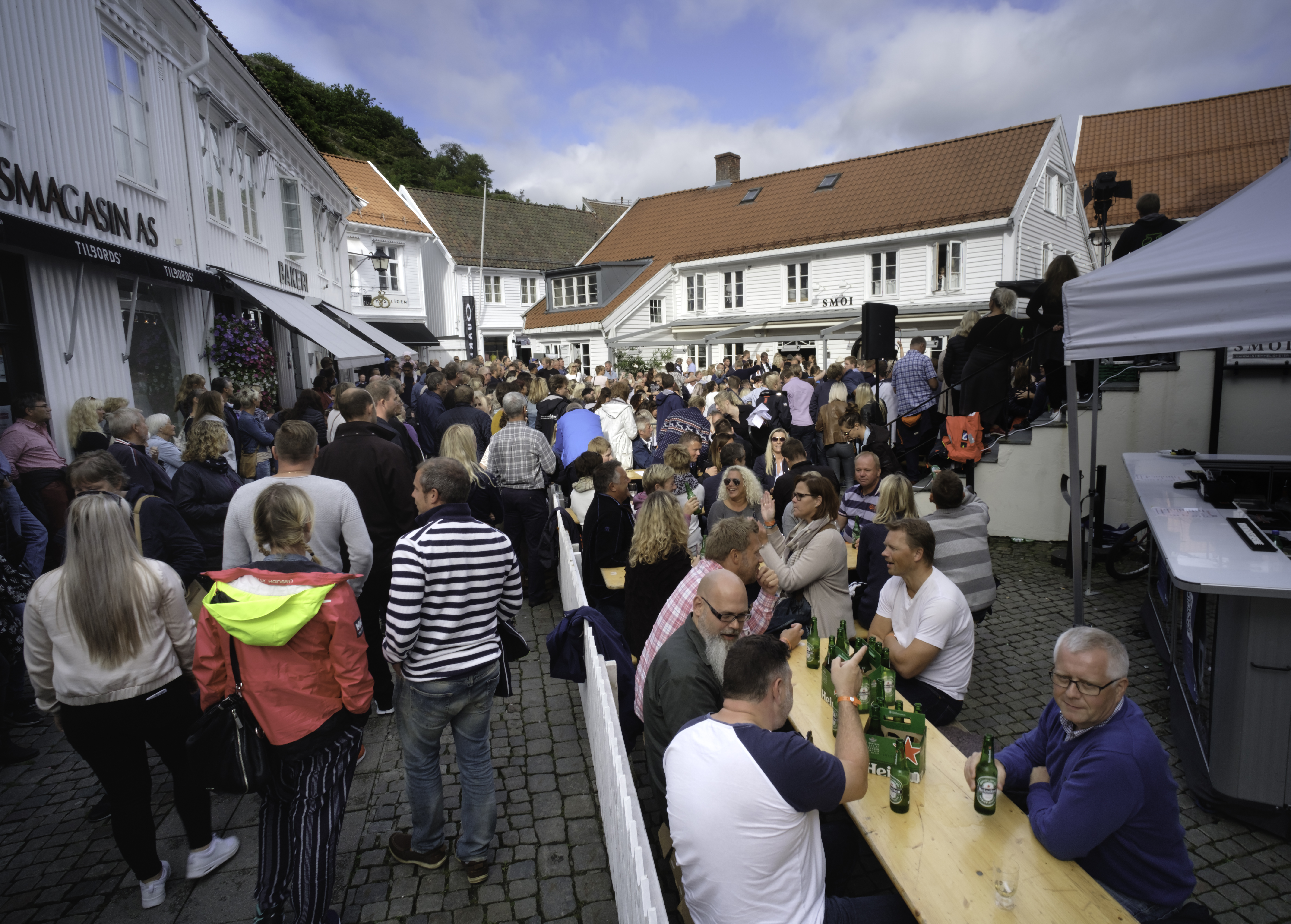 – Da blir hele sentrum sperret av, og gjort om til festivalområde. Vi har flere konsertscener, og mange boder og telt med servering av fisk og skalldyr. Det arrangeres verdensmesterskap i rekepilling, og en av festivaldagene dekkes det til verdens lengste skalldyrbord, forteller Sveinung Valand hos arrangøren av Skalldyrfestivalen. Festivalen trekker flere enn 60 000 besøkende, og arrangeres i år for 29. gang.