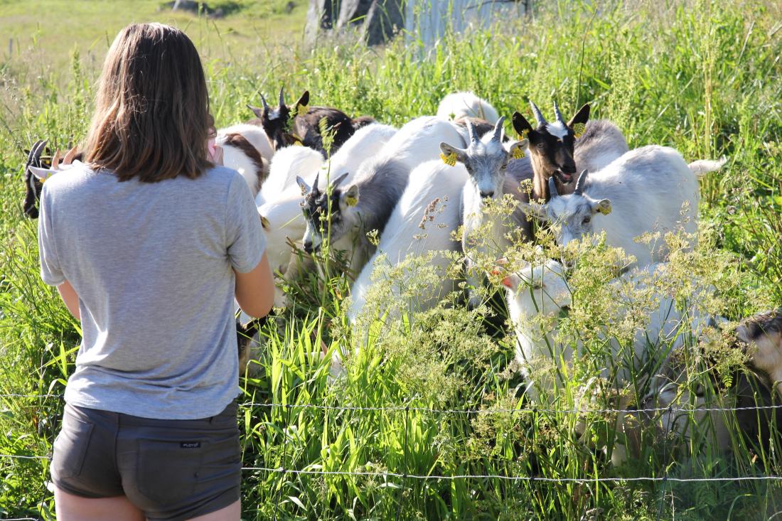 Fjellsiden er bratt, og spesielt god plass til bobilen er det ikke, men vi var heldige å få med oss innsamlingen av geitene for kvelden. På raske, sikre føtter strømmer de ned fra fjellsidene og inn i fjøset.