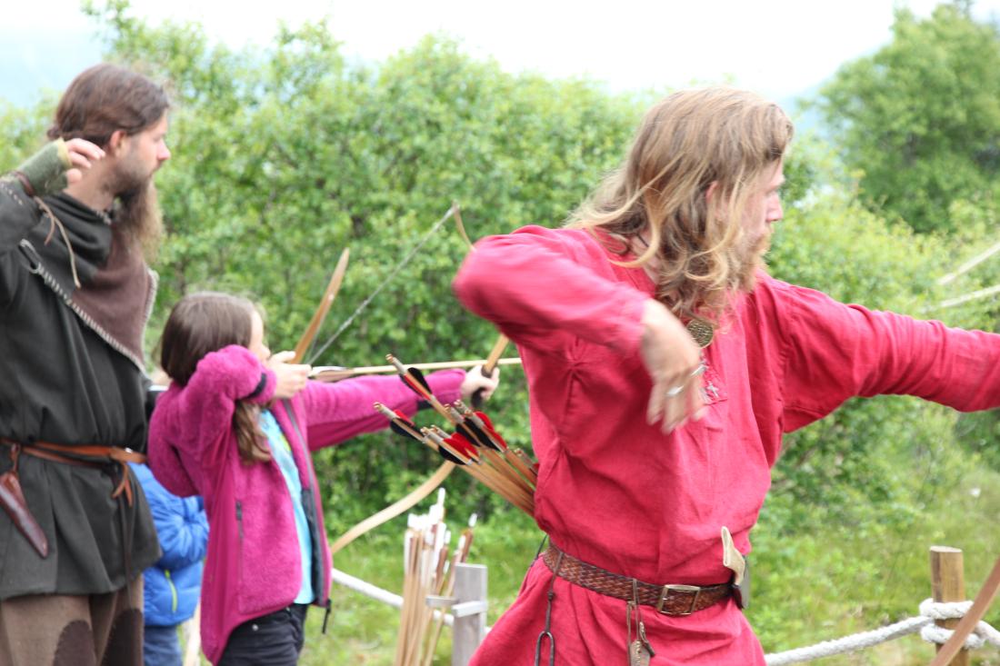 Ved å følge en middels godt merket sti ned til vannet i én kilometer kommer du først til tautrekkingskonkurransen. Her er det også en liten kiosk, du kan ri på en fjording og det er muligheter for å skyte med pil og bue. Det siste slo veldig godt an, for alle aldre.