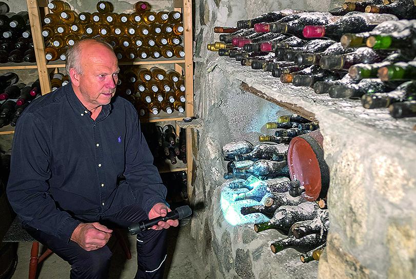 – Den eldste flasken vi har er 40 år. Det gjelder å ha gode kjellere. Her er det én meter tykke kjellervegger og mørkt. Det er ti grader hele året og litt fukt skal det også gjerne være, forklarer Setnes.