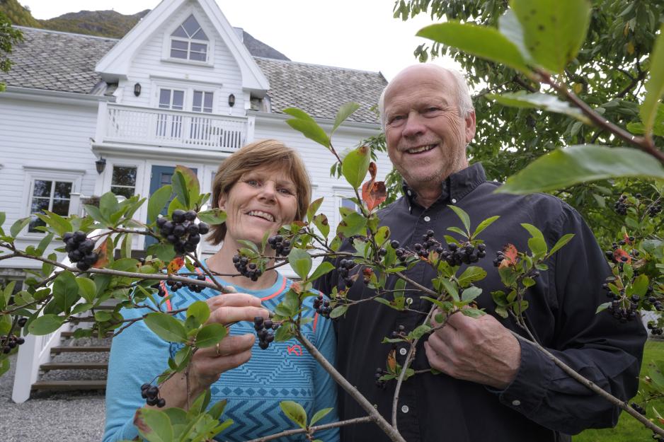 – Klimaet her i Åndalsnes er flott for bær. Vi plukker det meste selv, men jordbær og bringebær kjøper vi litt av. Kona Møyfrid er også med på vingården. Hun står for administrasjon og regnskap, men er også med og sanker bær, sier Setnes.