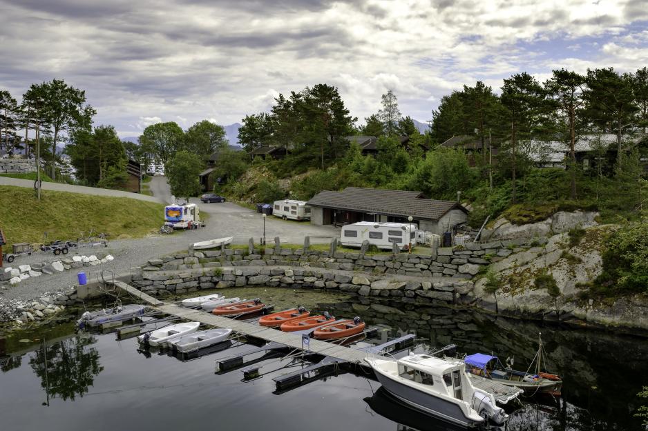 I prisen for 150 kroner døgnet følger også kode til gjesteservicehuset som ligger i småbåthavna 200 meter fra bobilparkeringen. Der har besøkende adgang til dusj, toaletter, vaskerom og oppholdsrom.