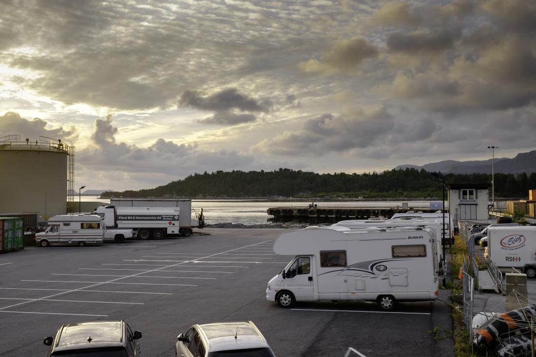 – Vi kom til Florø fra Ålesund. Og i Ålesund var det kø for å få plass. 10-15 bobiler stod i utkanten av bobilparkeringen og ventet. Det var biler som hadde stått et helt døgn på vent. De måtte være på vakt i tilfelle noen dro, men vi opplevde ikke krangling om plassene og har bare positive opplevelser. Opplevelsen med å komme til Florø var en overraskelse, at det ikke var flere bobiler her, vi er nærmest alene. Vi rotet litt før vi fant plassen, endte opp på kaia hvor rutebåtene går, men ved å kjøre litt lenger ut langs kaia fant vi parkeringen, forteller Gustav.