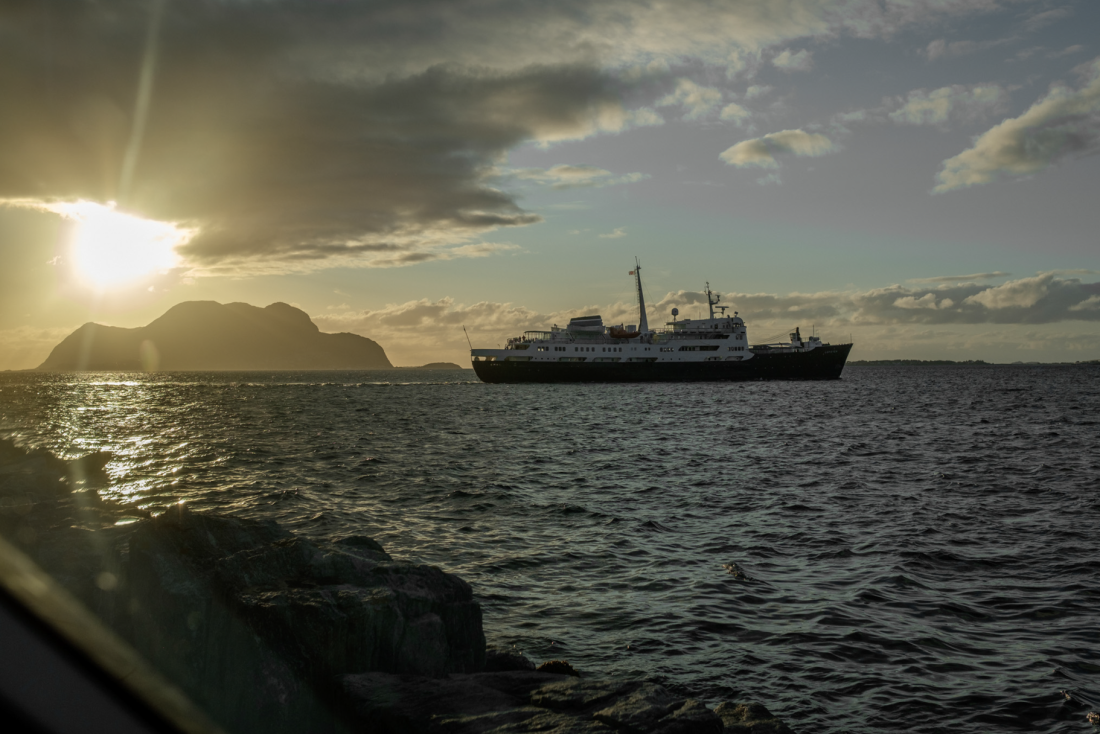 En gang var det storm da vi var her. Da kunne vi ikke stå ved kaikanten med bobilen slik som nå. Stormen var varslet, så folk fra kommunen var her og fjernet alt løst av benker og bord. Vi plasserte bobilen helt inn til fjellkanten og vi tok inn alt løst hos oss. Det å oppleve naturkreftene trygt fra bobilen var en flott opplevelse. Det er fantastisk utsikt og mye å se og å følge med på her nede ved kaia. Når det ikke er storm trives vi best med å være ute.
