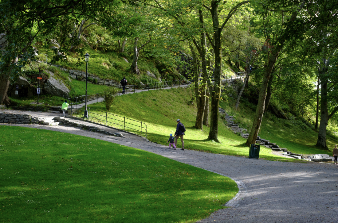 Marianne og Edvard anbefaler andre besøkende en vandring i bysentrum; her er det masse å se og oppleve. Fjellkafeen på Aksla er fin å gå til hvis formen er god nok. Det er også merket tursti rundt Aksla. Alt er i nærhet av bobilparkeringen.