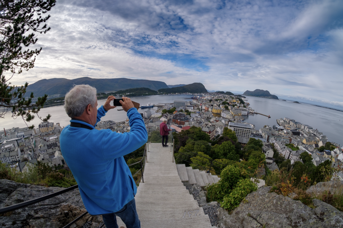 – Aksla utsiktspunkt må en innom. Her er det utrolig vakker utsikt over skjærgård, sentrum og Sunnmørsalpene. Det er fint å gå opp de 418 trappene fra Byparken hvis en er bra til bens. Det er gode trapper med hvilepunkter underveis. Bruker du bil må du regne med at det er kø, og med bobil kan det bli litt trangt.