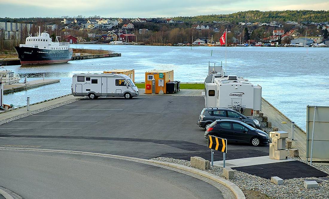 Bobilene kan parkeres helt ved bryggekanten. Så langt er det 10 plasser med strøm, men det kan utvides etter behov.