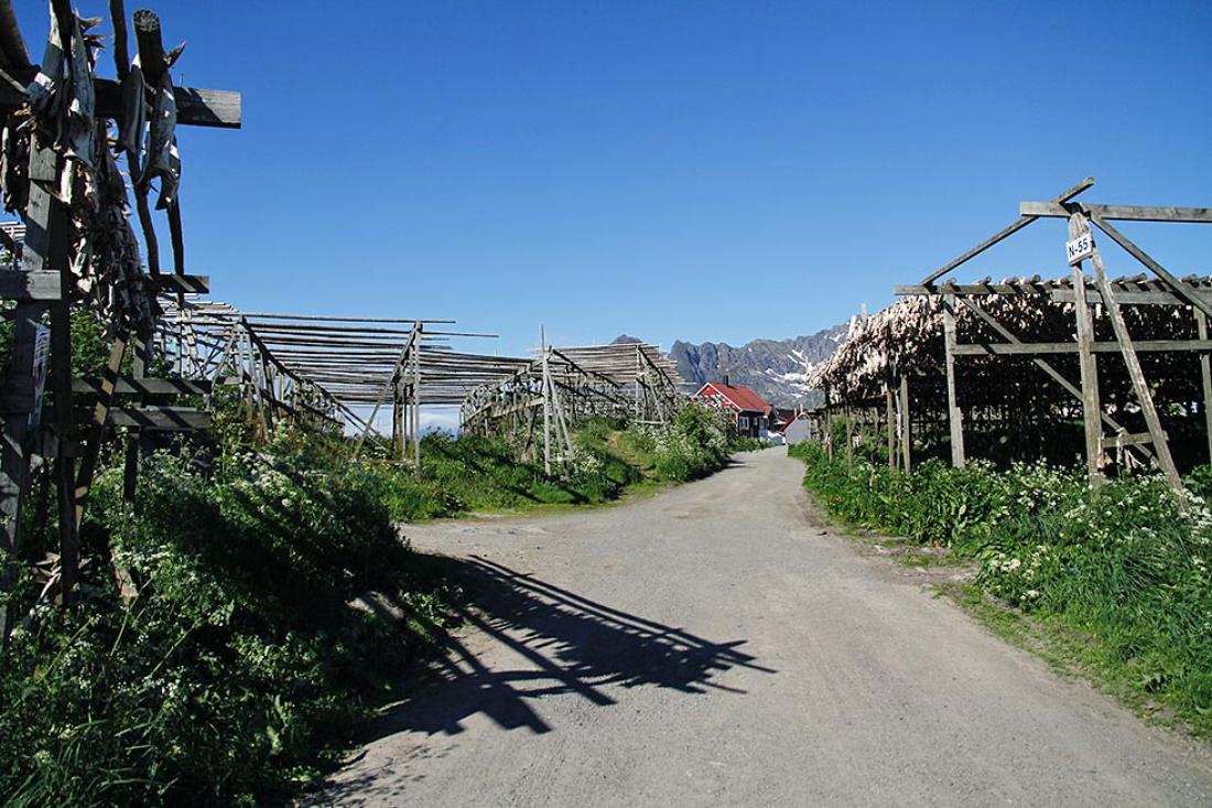 Fotballbanen i Henningsvær er en meget fotografert og berømt bane på sosiale medier. Like før vår tur beundret jeg de spektakulære bildene tatt fra luften. Jeg vil påstå at det å besøke banen ikke var like spektakulært i virkeligheten. Opplevelsen av en fotballbane omgitt av hav, krever fugleperspektiv, og den oversikten får du ikke fra bakkenivå. Det var likevel en fin, liten gåtur fra sentrum, og gøy å få med seg. I utkanten av banen vi nærkontakt med imponerende mengder tørrfisk, og fikk både litt overblikk og et flott møte med det åpne havet.
