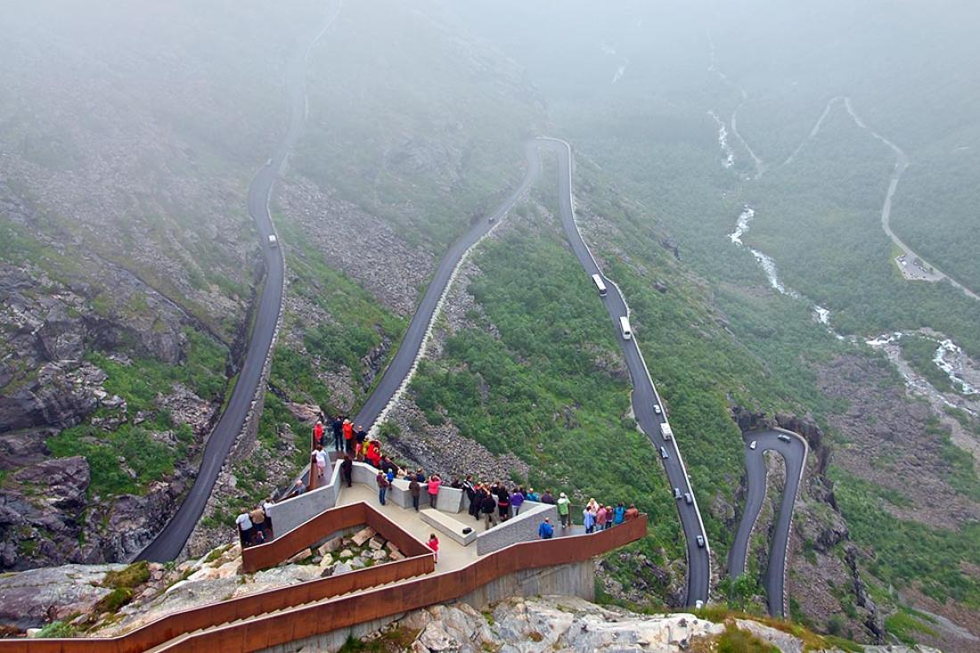 For å komme ned kan du enten ta gondolen, eller du kan gå ned via merket sti og svinge innom Rampestreken. Dette er et av landets mest fotograferte områder, og det er ikke uten grunn. Utsiktsplattformen ser ut som om den svever der den henger ut over det bratte landskapet med Åndalsnes nærmest rett under deg. Normalt tar det en times tid å gå ned.