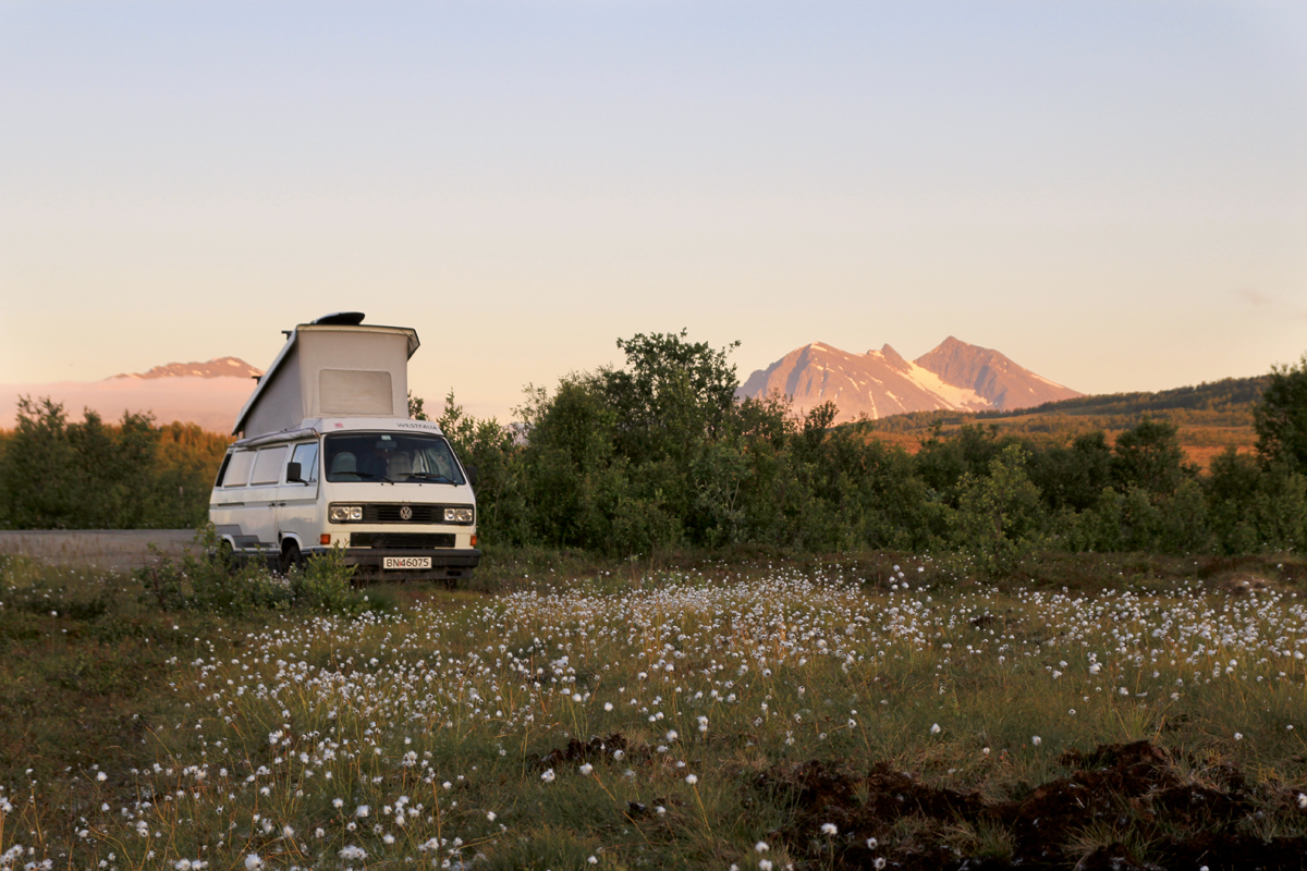 Det aktive unge ekteparet har gått gradene i campingverdenen. Inngangsbilletten var en Passat stasjonsvogn som ble innredet med madrass og leselys. En ferie på fire uker i Sverige og Danmark ga mye muligheter for kiting og uteliv. Det var trangt å sove og mye rydding og rigging for å få det til å fungere, men friheten ga mersmak. Neste skritt var en dedikert bobil, en VW Club Joker 89 modell med pop-top og Westfalia-innredning. – Det var en drøm å få pop-top så vi kunne stå inne i bilen, forteller Peter (32). Bilen var pen, hadde lite rust og en god motor. – Jeg måtte fikse kjøleskapet, men ellers var det en god bil som aldri sviktet selv om den brukte alt for mye bensin. Komforten var en revolusjon sammenlignet med bagasjerommet på Passaten. Vi hadde egne sitteplasser, egen soveplass. Og ikke minst kjøkken! Vi hadde med oss mye utstyr som surfebrett, våtdrakter, kite og vanlig campingutstyr. Jeg monterte to rails på taket for å få med brettene. Bilen var en suksess for oss med sine gode løsninger og nette størrelse. Den var enkel å parkere og få med på ferger, og den holdt seg godt i pris.