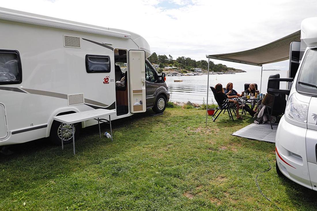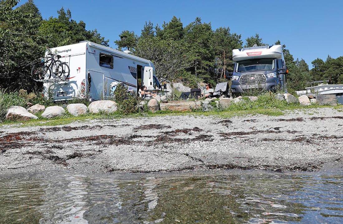 Breivik Camping tilbyr ikke gjestene Wi-Fi. I stedet byr vertskapet på fellesleker, allsang, aktiviteter for barna, og ikke minst en fantastisk strand med flytebrygge. Din Fritid parkerte helt nede ved vannkanten, og fikk noen flotte sommerdager på plassen utenfor Grimstad