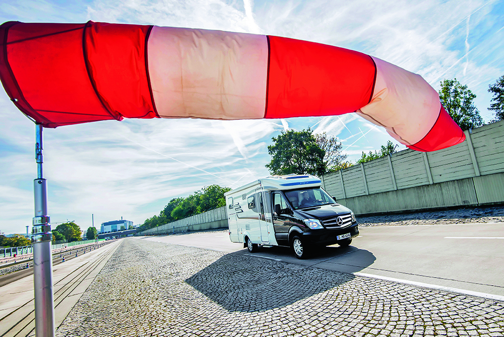 En bobil på rundt sju meter har bortimot 20 kvadrat-meter sideflate som i kraftig sidevind kan medføre ubehagelige og i visse tilfeller farlige situasjoner.