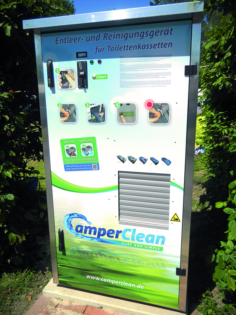 I dag er ikke dette science fiction, men noe du kan gjøre på rundt 25 europeiske campingplasser. En av de er fem-stjerners campingplassen Alfsee Feriepark (bildet) som tilbyr sine gjester den nye tjenesten. Maskinen er allerede godt utprøvd, og kundene slår fast at den er verdt prisen på to euro. Mer info på www.camperclean.de