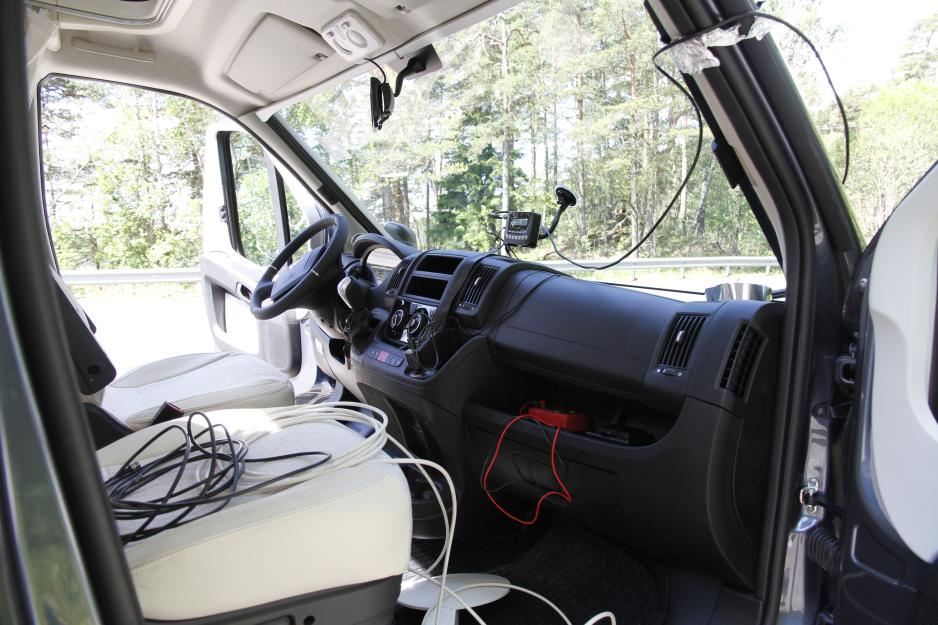 Vi er på veien med en bobil fullpakket av avansert teknisk utstyr. Været er ikke det beste, men det har heldigvis ikke noe å si for radiomottaket i vår test-bobil. NRKs tekniske ekspert Michel Gascoin er med oss på tur for å teste ut en håndfull antenner på en veistrekning som ligger i et område med dårlig dekning. Vi testet ut disse antennene: Bobilens originale VHF/UHF-antenne, som i teorien også skal ta inn DAB+ signaler. En VHF/UHF-antenne, Triax UFO 150 LTE. En haifinneantenne. En god glassantenne, Alpine KAE-220DA, montert vertikalt og høyt oppe på frontruten, med metallteipen limt på A-stolpen. En hjemmelagd dipolantenne montert vertikalt og gjemt bak sofaen i bobilen.