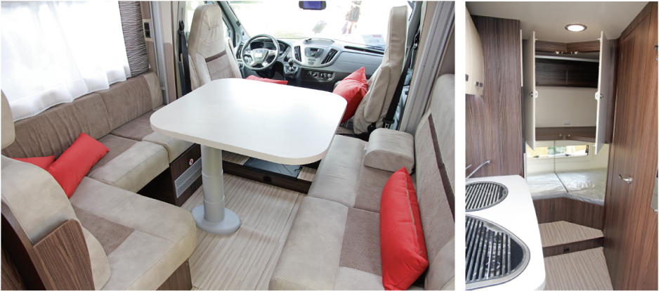 Nyhetene er kompakte Tessoro 483 på 6,59 centimeter og Ford. Her er det en unik sengeløsning bak, i tillegg til den tradisjonelle senkesengen foran: En skikkelig stooor motstående sittegruppe med sitteplass til seks-sju mennesker rundt bordet. Bakerst ser det ut som om det kun er et skap langsmed bakveggen, men det er snakk om en seng for halvannen person (to barn) nederst, med et stort skap over.