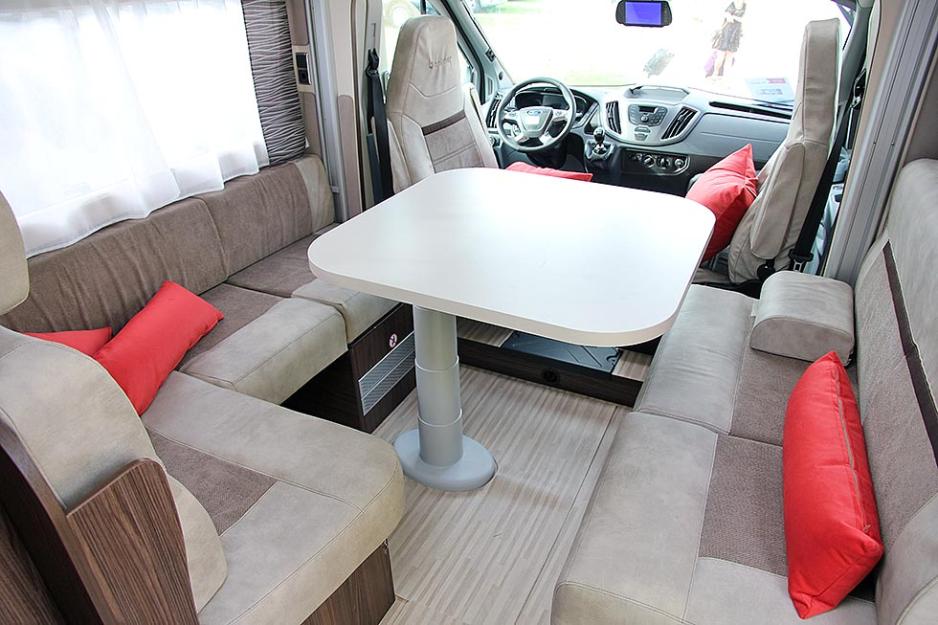 Nyhetene er kompakte Tessoro 483 på 6,59 centimeter og Ford. Her er det en unik sengeløsning bak, i tillegg til den tradisjonelle senkesengen foran: En skikkelig stooor motstående sittegruppe med sitteplass til seks-sju mennesker rundt bordet. Bakerst ser det ut som om det kun er et skap langsmed bakveggen, men det er snakk om en seng for halvannen person (to barn) nederst, med et stort skap over.