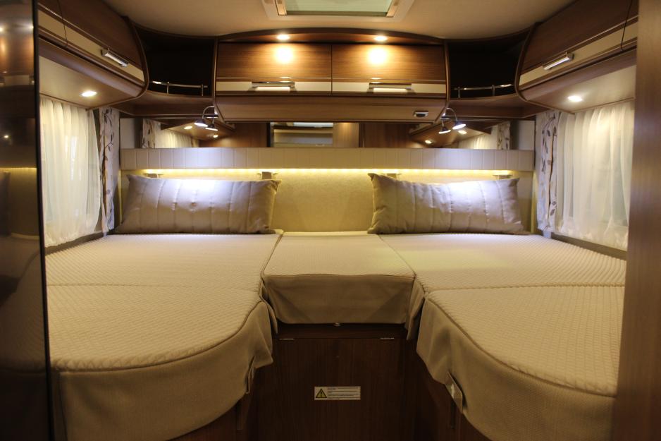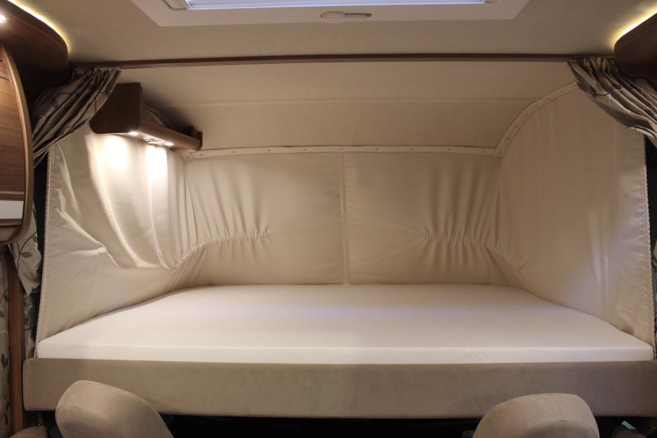 Senkesengen i førerhuset er manuell, noe som i praksis betyr at den er raskere å betjene enn en elektrisk utgave. Den er forholdsvis lett å trekke ned, og det går enda lettere opp igjen. Først må ryggene på forstolene legges ned, men dette er raskt gjort. Sengen måler 178 x 155 cm og består av en åtte centimeter madrass på fjærende treribber. Fra gulvet og opp til sengen er det 116 cm, slik at voksne lett entrer sengen via sidesitteren, mens barn kan bruke bordet i tillegg. Da er stige opp til sengen unødvendig. Det er heller ikke sikkerhetsnett ved sengekanten. Av utstyr til sengen har man nøyet seg med to lesespotter.