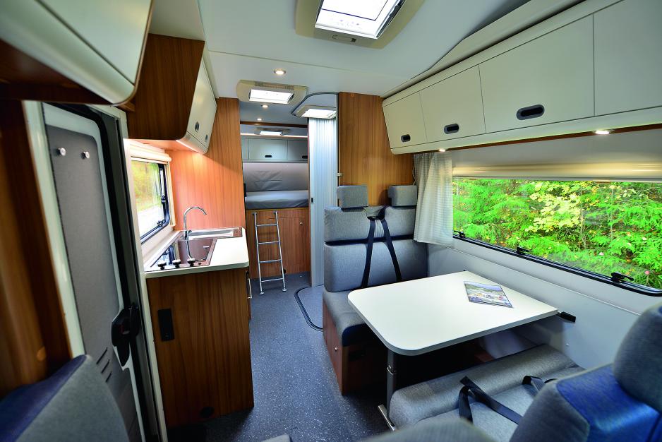 Med en helt ny baderomsløsning, høyt under taket og et kjøkken som ikke tar for mye plass, er dette en av de romsligste alkovebobilene på markedet. Luftfølelsen er skapt uten at det går ut over funksjon eller komfort. Modellen er en av de mest interessante nye bobilene i innstegsklassen.