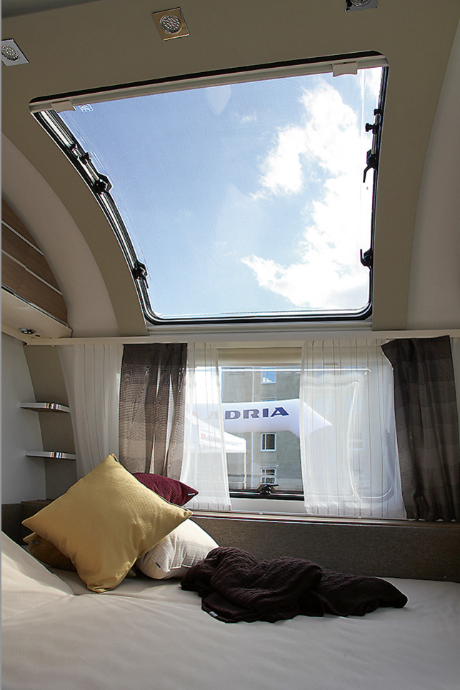 Stort kjøleskap og Adrias etter hvert så berømte, romslige takvindu over dobbeltsengen understreker at dette er en vogn også med fokus på behagelige opplevelser.