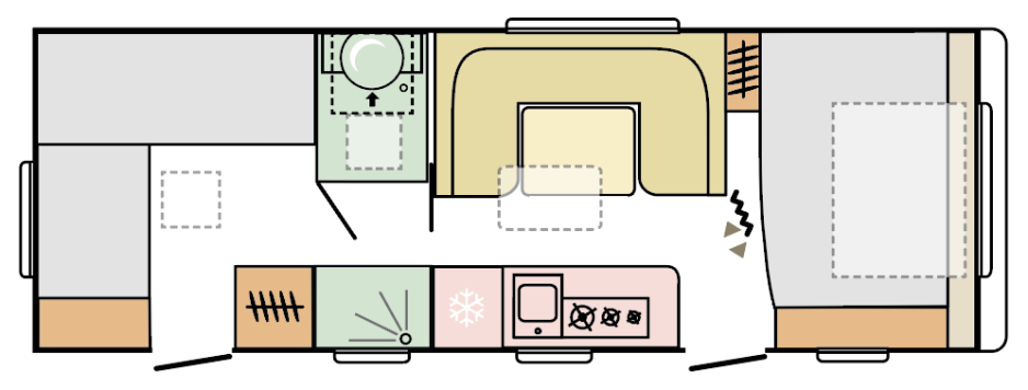Kjøkkenbenken er et par hakk større enn normalt, og det er klart at det settes pris på om vognen er fullt bebodd. Totalt er det soveplass til sju.