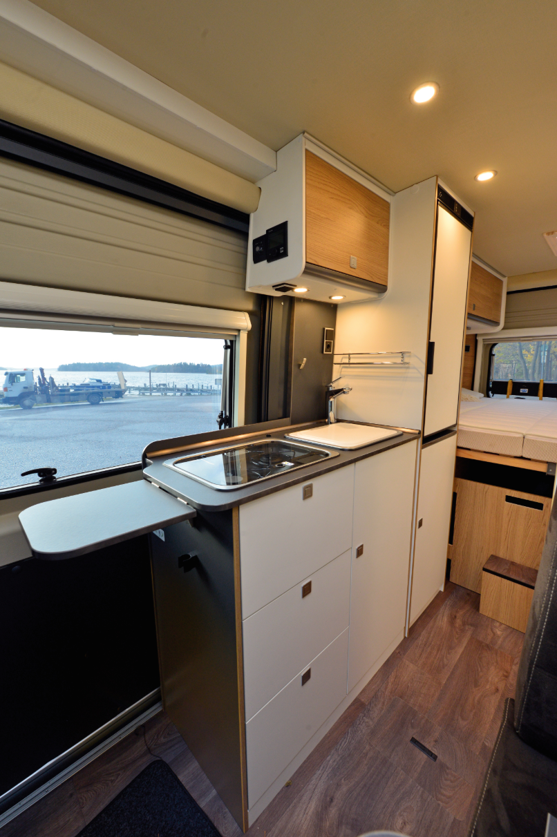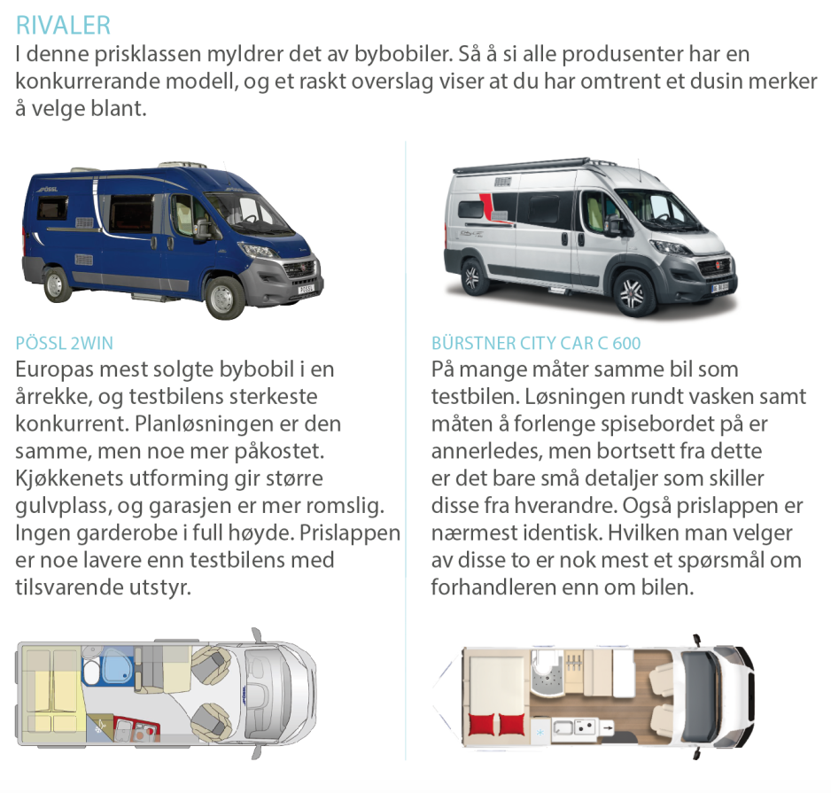 Grovt sett kan vi dele bybobiler inn i to kategorier: De der produsenten har gjort alt for at oppbevaringsplassen under bakre seng skal bli så stor som mulig – noe som utvilsomt er praktisk når større ting skal fraktes. Og de der man har latt lasterommet være noe mindre, men kompenserer med desto flere skap. Denne modellen tilhører sistnevnte kategori. Fordelen med dette er at man enkelt har god oversikt over alt medbragt.