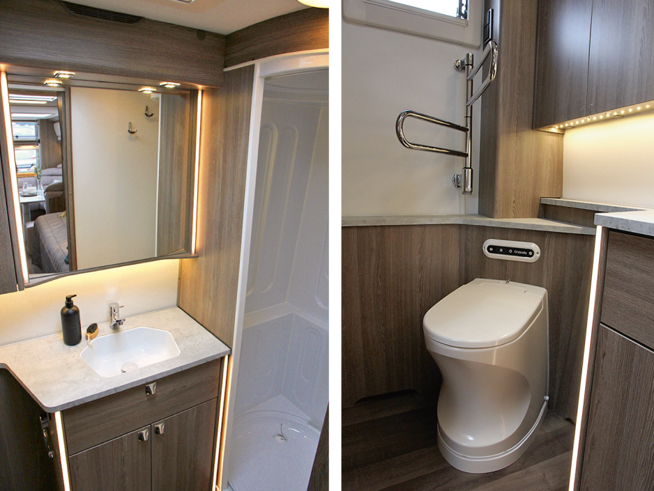 Hok, Sverige: 780-modellen med den kompliserte betegnelsen TDL FK KS med frontkjøkken er sesongens store nyhet. Det er to år siden Kabe lanserte sin første vogn med denne kjøkkenløsningen. Året etter kom det fire modeller, og i år lanseres altså 780 FK i både Royal- og Imperial-utgave. På kjøkkenet finner du hele fire gassbluss på Royal, mens Imperial også har en induksjonsplate. Her kan du både være effektiv mens du lager mat, og forhåpentligvis også glede deg over utsikten gjennom de store vinduene.