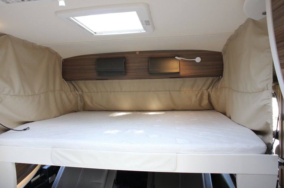 Jeg får lyst til å trekke en aldri så liten konklusjon med det samme: Det som er kritisk for om du vil trives i denne bobilen er om du godtar sengeløsningen. På pluss-siden er den meget plassbesparende. På den andre siden er soverommet trangt.