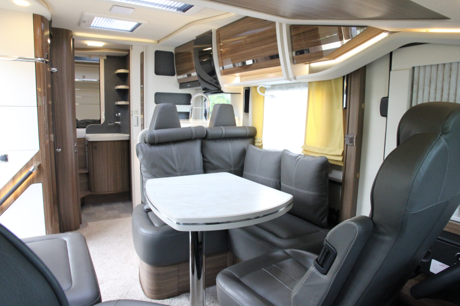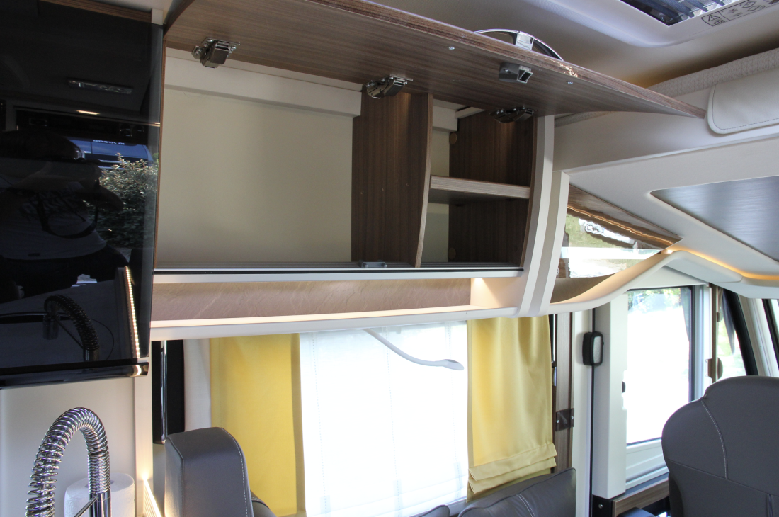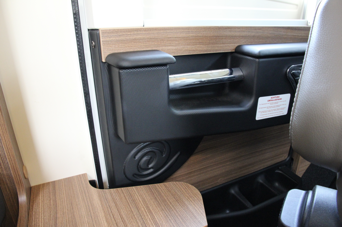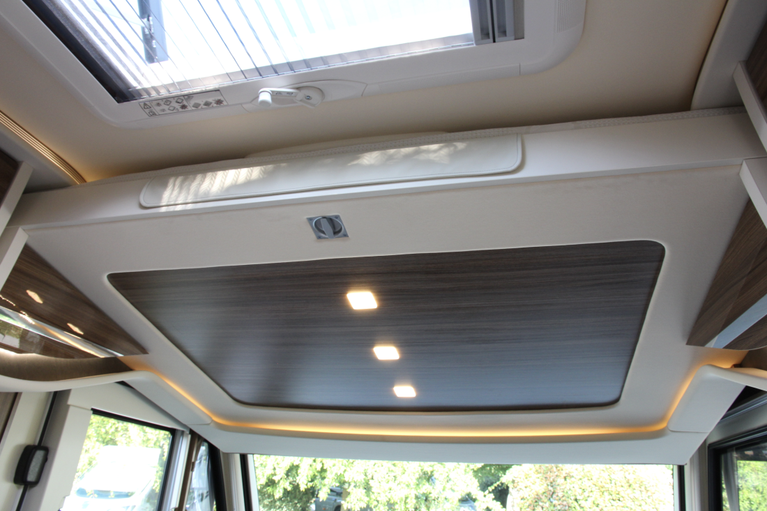 Det er uvanlig mange detaljer på denne modellen. Skinnseter med hvite sømmer og sydd logo, indirekte lys bak håndtaket ved inngangen. Skoskap rett ved inngangen med praktiske lommer til sandaler. Multimedieanlegget viser ryggekamera, kamera ved gråvannstanken, GPS-navigasjon og selvsagt radio og mediespiller.