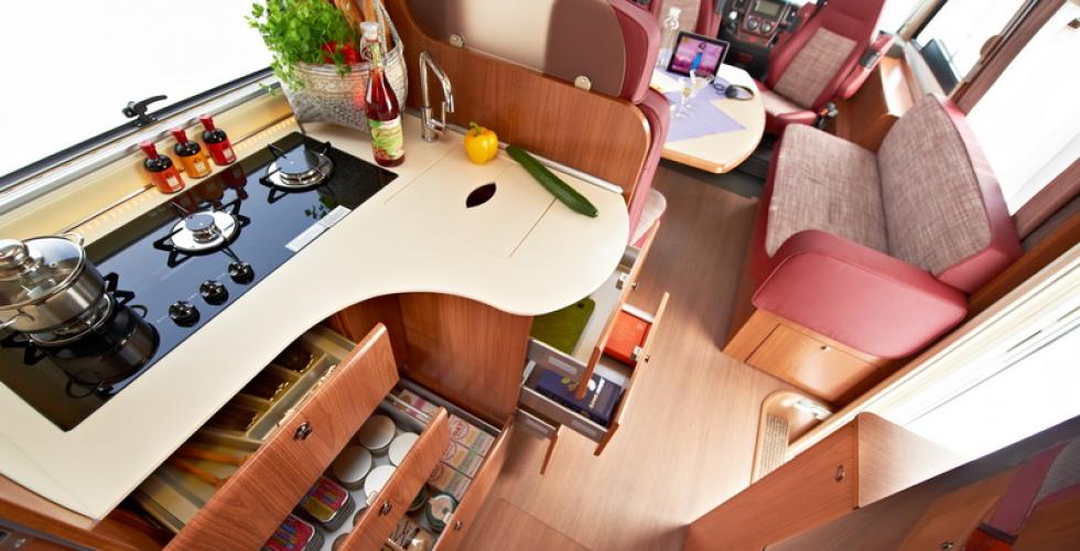 | Dette likte vi: Den generelle luksusfølelsen bilen gir. Romslig kjøkken. Tømming av gråvannstank fra førerplass. God kjøreopplevelse i en kompakt og balansert bobil. Dette kan bli bedre: Det er kun ett innvendig speil i bobilen, og det er plassert på skyvedøren - som ikke alltid er tilgjengelig. Samle lysbrytere for enklere og mer logisk betjening. Dette likte vi ikke: Busspeilet på venstre side sperrer for sikten mellom A- og B-stolpen. I rundkjøringer må fører bøye seg ned for å se andre biler. Senkesengen dekker for øvre del av utvendig speil på høyresiden, noe som gir redusert sikt litt langt bakover. |