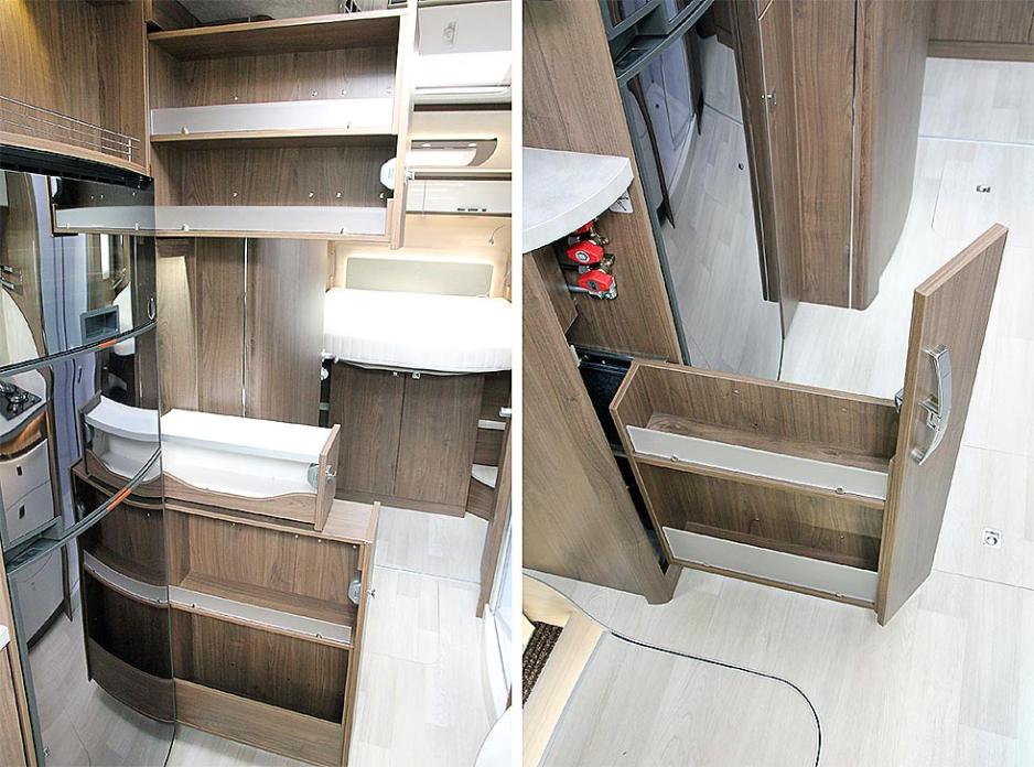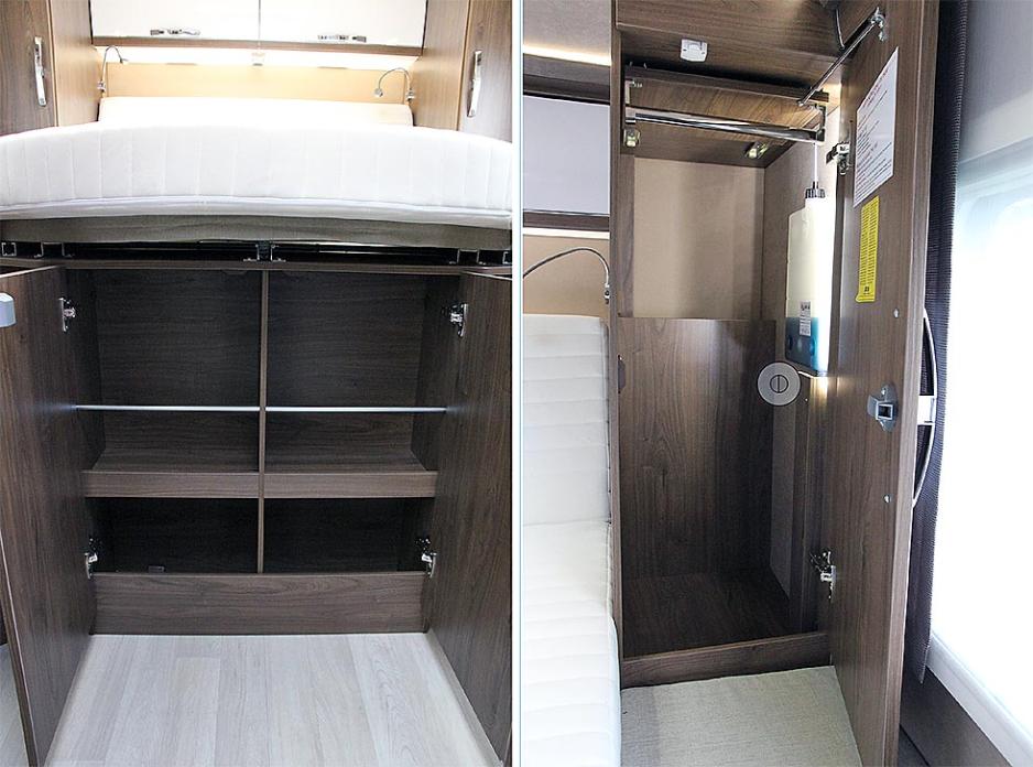 Platin 8400 kommer i to utgaver: GD og QD. Førstnevnte er enkeltsenger, mens QD (som er vår testmodell) har en frittstående dobbeltseng. Løsningene på de to søstermodellene er ikke helt like. Dusj og bad har byttet side, og det er et ekstra skap på utgaven med enkeltsenger, siden det ikke trengs like mye plass ved fotenden her som en dobbeltseng krever.