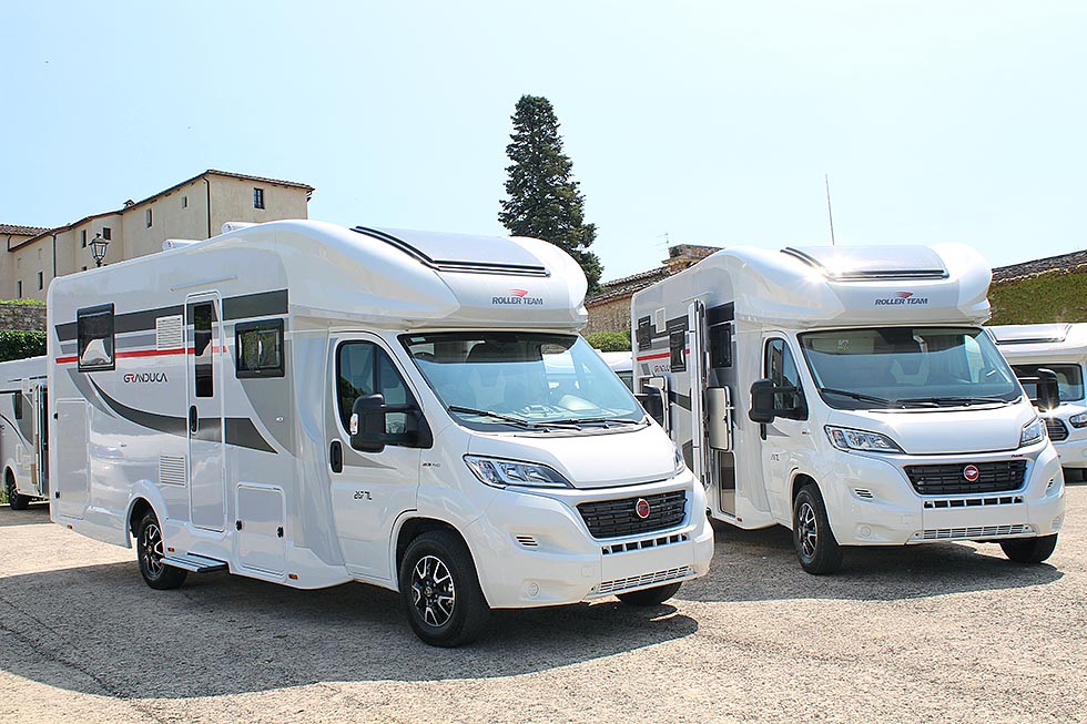 Den italienske produsenten RollerTeam inngår i Trigano-gruppen, og har i sitt sortiment både bybobilserien Livingstone og tre serier i halv- og helintegrert utgave: Zefiro, Kronos og Granduca. Alle er prisgunstige, og toppserien Granduca har for 2020-sesongen fått størst oppmerksomhet.