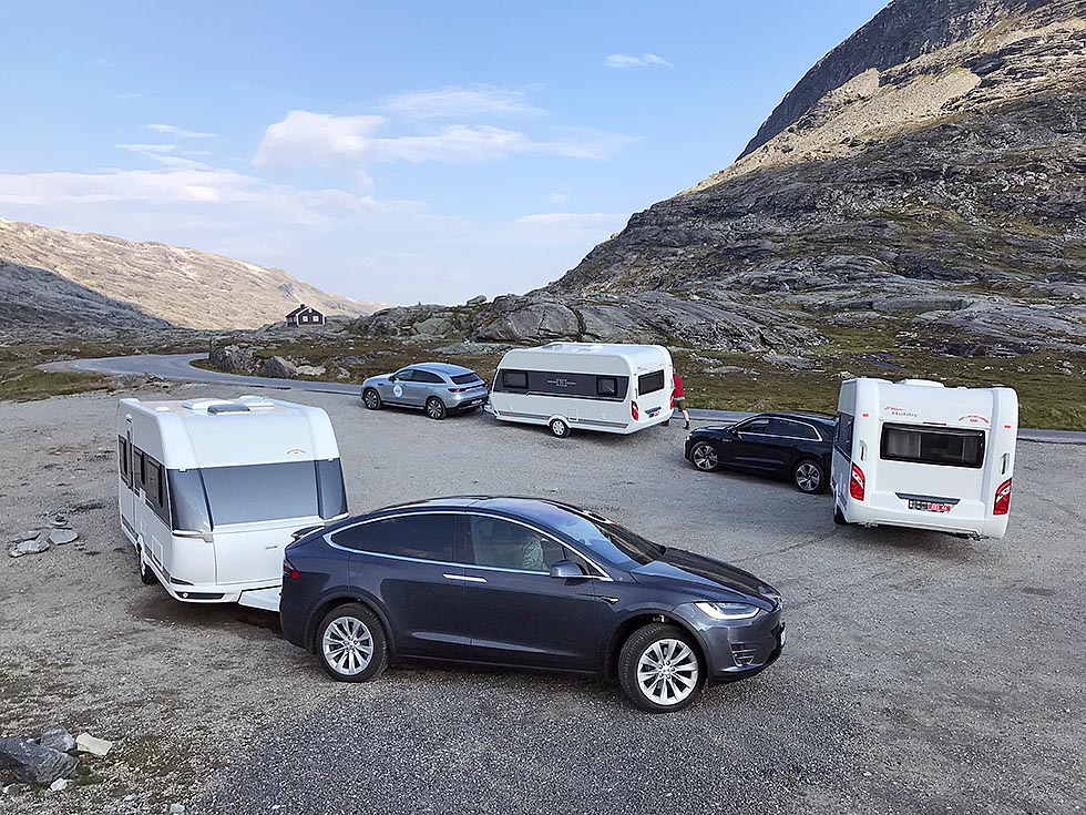 Det selges flere elbiler i Norge enn noen gang. Hvilken betydning får dette for campingvognbrukerne? Er det i det hele tatt mulig å reise på ferietur med elbil og vogn? Norsk elbilforening hektet tre identiske vogner bakpå tre ulike elbiler, og dro på tur for å finne svaret.