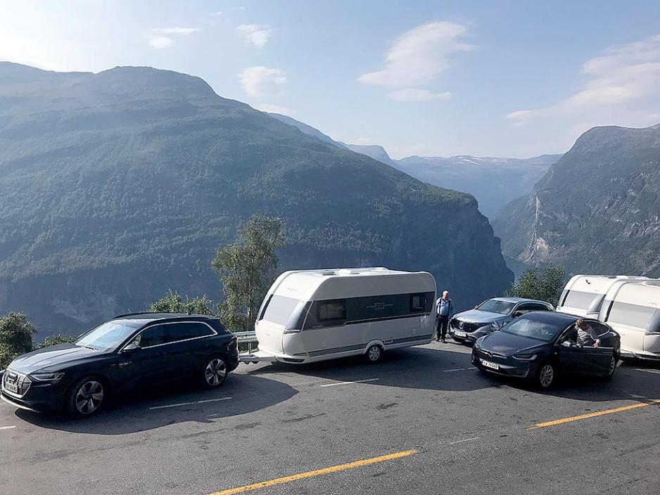 Og for noen lære- og minnerike dager det ble, med Dalsnibba, Geiranger, Ørnevegen, Trollstigen og Atlanterhavsveien. 1381 kilometer på tre dager. Vi anbefaler imidlertid at du som turist tar deg bedre tid enn vi gjorde her. Testen handler mest om hvordan de tre bilene leverte som trekkvogner, den relative forskjellen i strømforbruk mot normaldrift og hvordan infrastruktur påvirker en slik tur.