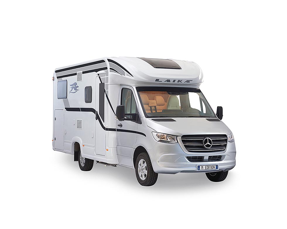 Halvintegrerte Laika M Edition på Mercedes Sprinter 311 CDI-chassis er en av nyhetene. Den 699 cm lange modellen kombinerer Mercedes´ kjøreopplevelse med Laikas ekspertise innen interiørdesign og materialvalg på bobildelen, står det å lese i pressemeldingen. Møblene og veggene i elegant italiensk valnøtt-finish gir gode assosiasjoner til tradisjonsrike toskanske håndverks møbelfabrikker. Den høykvalitets laminatplaten på kjøkkenet og bordet, anti-fingeravtrykk og ripebestandig, gir et preg av klasse til bodelen. Modellen har enkeltsenger med trelameller og madrasser med høy komfort, lysene er dimbare. Rammevinduer med blending og myggnetting er en selvfølge, og modellen er også godt egnet for vinterbruk med sin XPS-isolasjon.