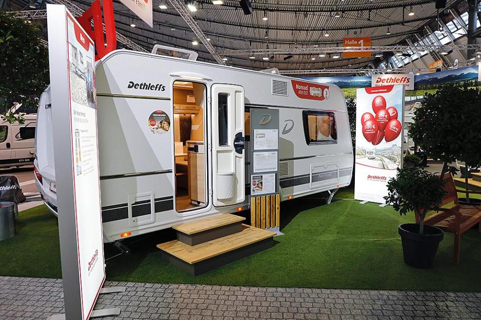 Dethleffs har et bredt vognprogram. Vi så 2020-nyheten Dethelffs Nomad 490 EST på Caravan Salon, og likte den praktiske vogna, som har fokus på sovekomfort og romslig bad. 490-modellen har enkeltsenger på over to meter, og en «kjørbar» totallengde på 729 cm. Stort, tverrstilt bad bak i full bredde (230 cm), med vindu og mange oppbevaringsrom. Midt i vogna er det motstående kjøkken og sittegruppe.